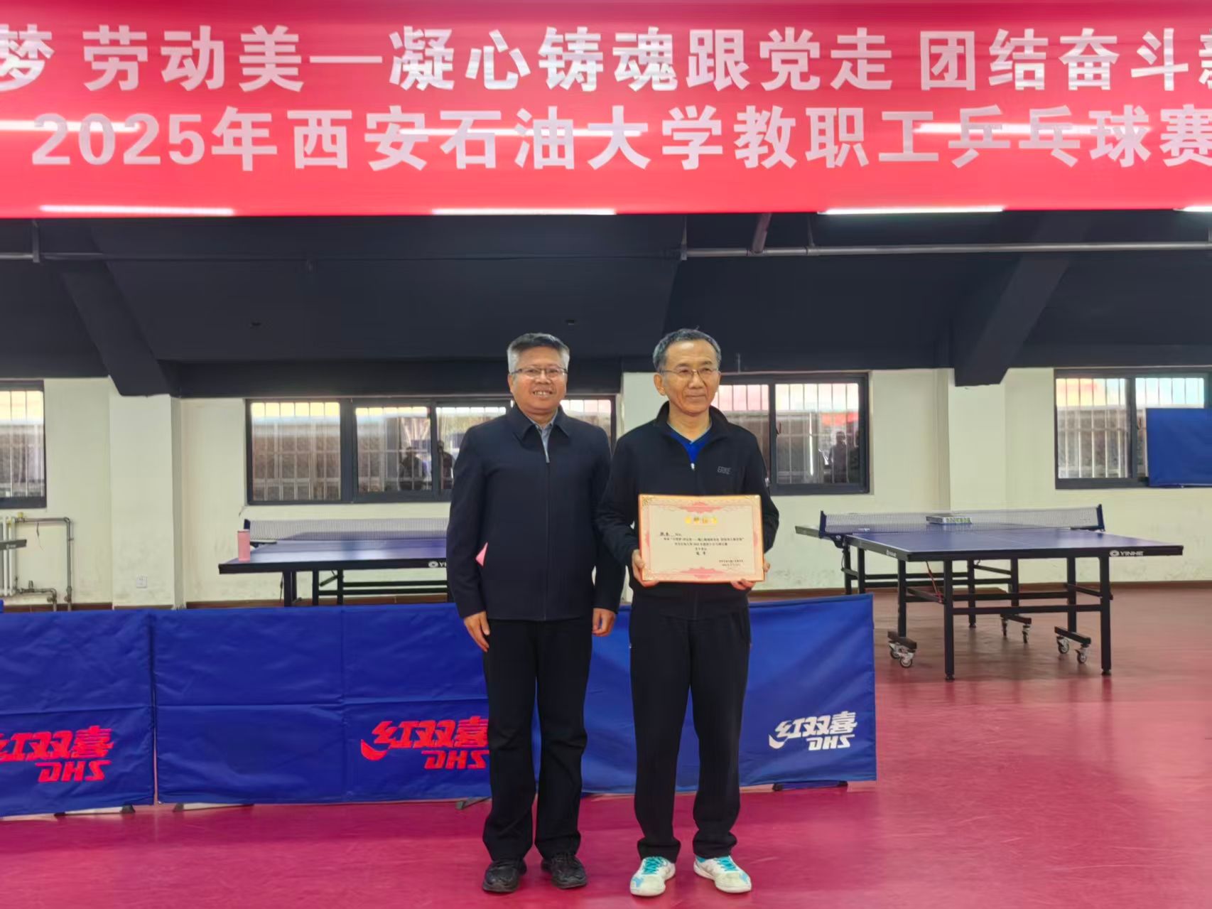 冬日燃激情,乒乓奏华章。为期一周的“中国梦·劳动美——凝心铸魂跟党走 团结奋斗新征程”西安石油大学2025年教职工乒乓球比赛于11月14日在鄠邑校区东体育场圆满落下帷幕。本次比赛旨在丰富教职工的业余文化生活,增强身心健康,促进各学院、部门之间的交流,得到了全校教职工的积极响应和热烈参与。