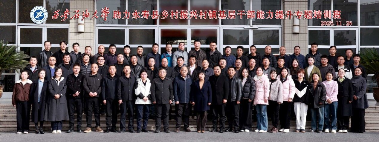 11月26日下午,西安石油大学助力永寿县乡村振兴村镇基层干部能力提升专题培训班在我校明德校区顺利开班,永寿县农业农村局副局长郝娜娜、我校校工会主席吴民生出席开班仪式,来自永寿县各镇村干部50余人参加培训。