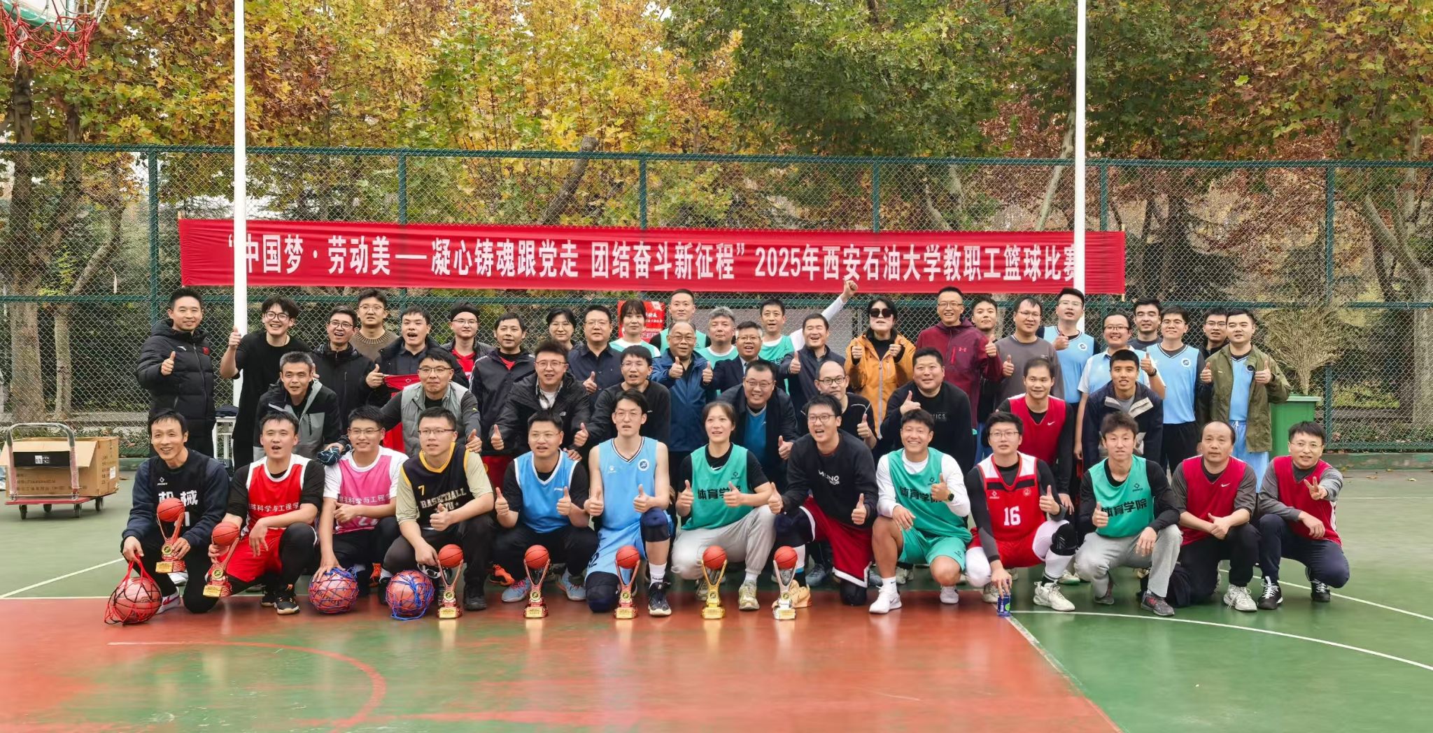 为丰富教职工业余文化生活,增强团队凝聚力,营造积极向上的校园文化氛围,由学校工会主办、体育学院承办的“中国梦 劳动美——凝心铸魂跟党走 团结奋斗新征程”2025年西安石油大学教职工篮球赛于10月20日在我校鄠邑校区东篮球场火热开赛。本次赛事吸引了来自全校基层工会13支代表队、共计近110名教职工运动员踊跃参与。经过3周、30场紧张激烈的角逐,赛事于11月5日圆满落下帷幕。
